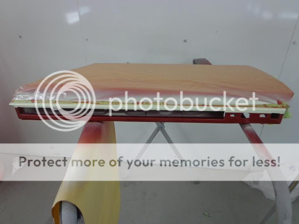 We managed to finish of the scuttle yesterday and Rob let me do all of the painting, I rubbed it down with 800 wet, gave it a good clean and got spraying, off course I was not allowed to put the clear coat on.